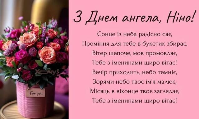 З Днем ангела, Ніночко! Нехай ангел подарує тобі в цей день особливу силу та віру в себе, а твоє життя буде наповнене любов’ю і благополуччям.