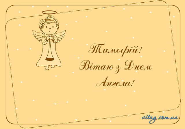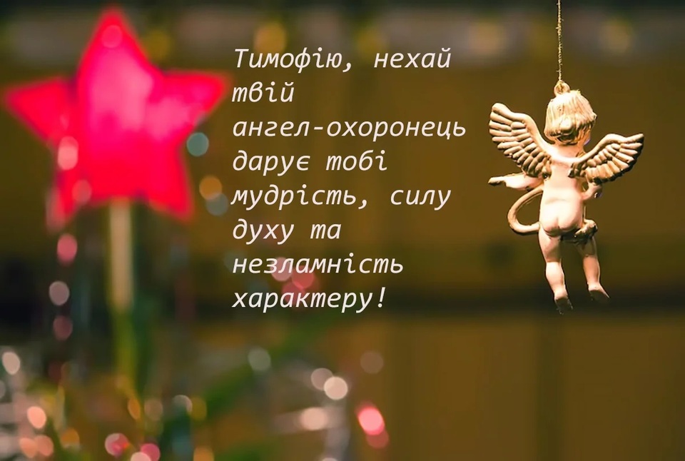 Дорогий Тимофію! Нехай твій ангел почує всі твої молитви і допоможе впоратися з усіма негараздами на життєвому шляху! Будь стійким у своїй вірі, допомагай нужденним, прощай людям їх помилки і будь милосердним по відношенню до близьких. Зі святом тебе!