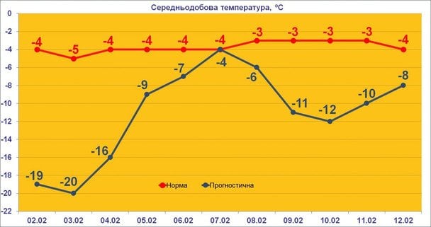 За прогнозом синоптиків, сильні морози утримуватимуться ще щонайменше добу. «Ще 4 лютого сильні морози утримаються: вночі 18–23 градуси морозу, вдень 8–13 градусів морозу», — уточнив він.