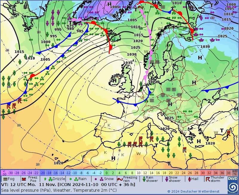 “Понеділок в Україні й надалі під впливом антициклону, тож 11 листопада серйозних опадів не передбачається. Хіба хвіст атмосферного фронту черкне слабким дощем по східній частині.“, – розповіла експерт.