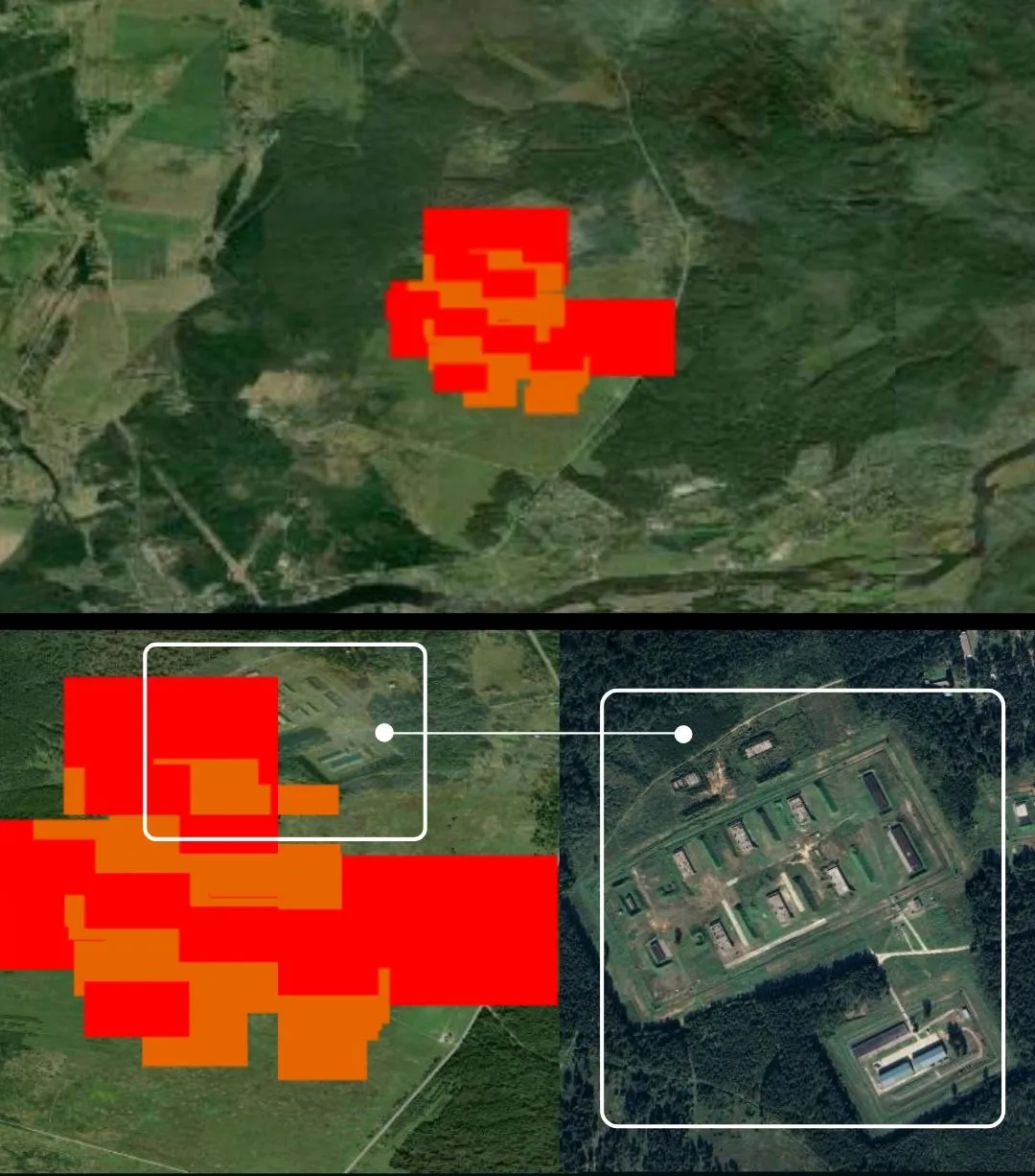 Район пожежі біля військової бази / Фото FIRMS NASA