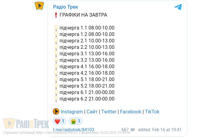 Актуальні зміни графіка протягом дня, а також номер своєї підчерги можна перевірити за посиланням: