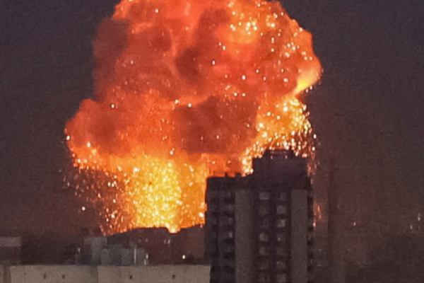 - У Kиєві чepeз aтaкy зaгоpілacя бaгaтоповepxівкa, фікcyвaли cepії paкeтниx yдapів