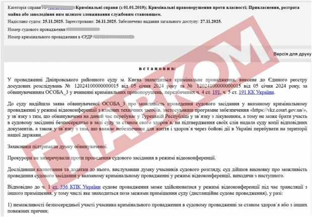 Начальниця відділу Управління освіти Дніпровської районної у Києві державної адміністрації Ольга Дроздова бере участь у судових засіданнях… з Туреччини. Про це свідчить ухвала суду, з якої випливає, що посадовиця перебуває в Анталії та підключається до слухань у режимі відеоконференції, передають Патріоти України.