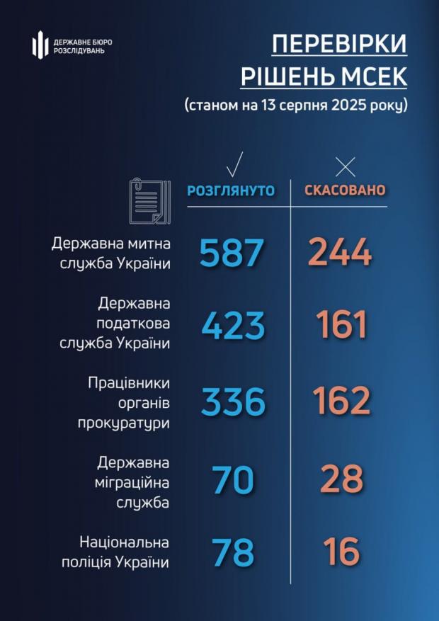 - Державна міграційна служба — скасовано 28 рішень із 70 розглянутих;