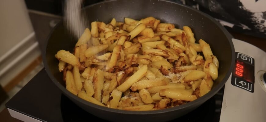 Смажити картоплю краще на добре розігрітій сковороді з невеликою кількістю олії. Кожен шматочок повинен мати контакт із поверхнею сковороди, щоб утворилася рівномірна хрустка скоринка. Не варто перемішувати картоплю занадто часто: дайте їй підрум’янитися з одного боку, а потім обережно переверніть. Завдяки крохмалю, картопля зберігає форму і не розвалюється під час обсмаження.