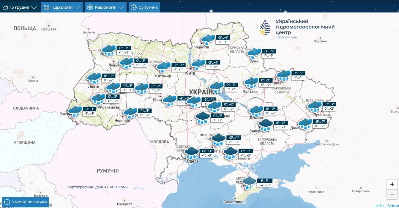 “Вже з 15 грудня в Україну знову прийдуть відлига та опади. З 15 числа по всій Україні очікується потепління до +3…8 вдень. Також на території всієї країни пройдуть дощі та сильний мокрий сніг”– Сказано в повідомленні.