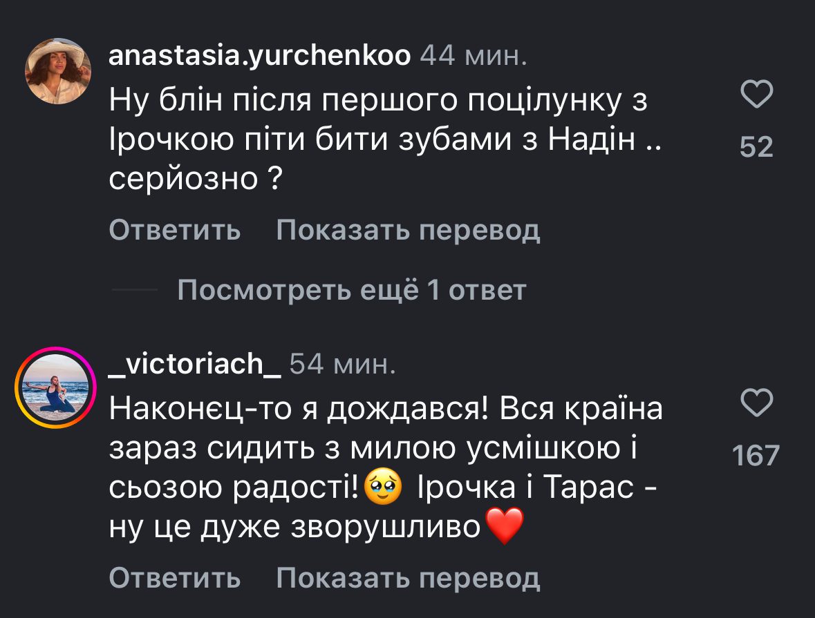 Також на проєкті сталося декілька зближень, однак, вони не порадували публіку, так як Тарас не зупинився на одній.