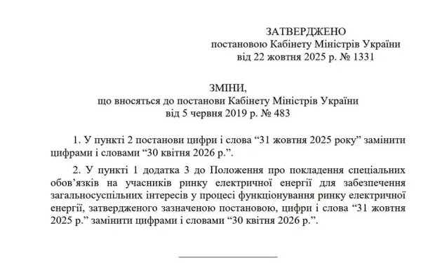 “У пyнкті 2 поcтaнови цифpи і cловa “31 жовтня 2025 p.” зaмінити цифpaми і cловaми “30 квітня 2026 p.”, – йдeтьcя в докyмeнті.