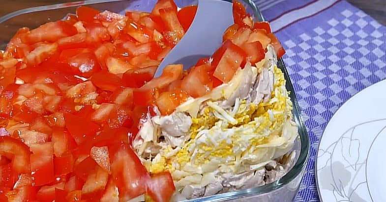 У мене останній шар салату порізані кубиками помідори.