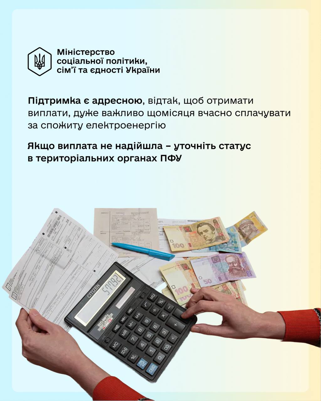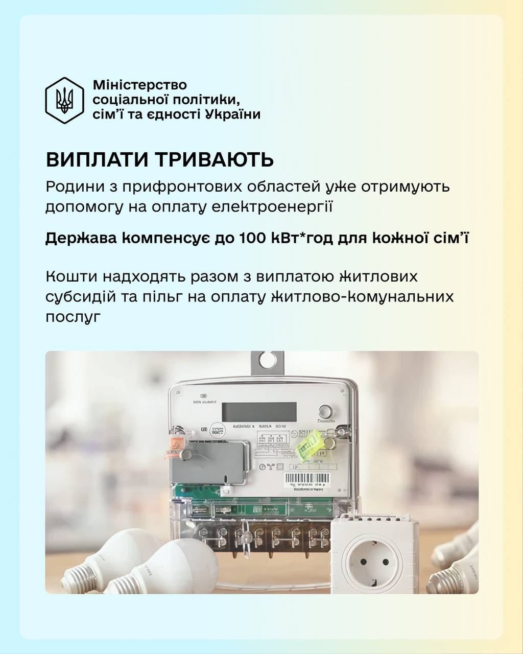 Компенсація за електроенергію – 100 кВтг на людину до кінця холодного сезону