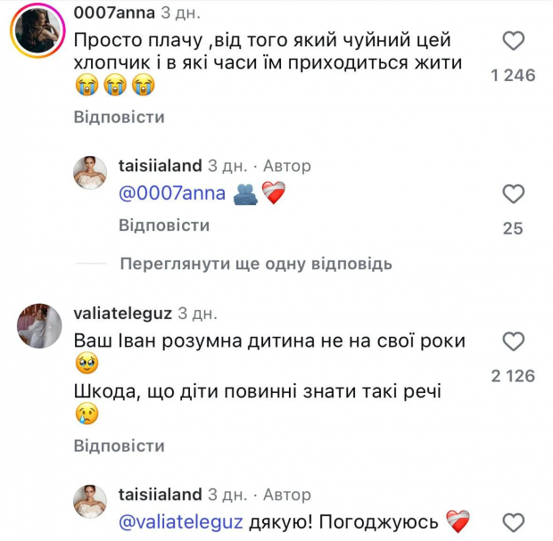 Користувачі в коментарях зворушились побаченим моментом і залишали свої враження. «Довели мене до сліз. Чому наші діти повинні рости в страху?», — питає користувачка Аліна. Яна додала, що це сильний, цінний та дивовижний момент”.