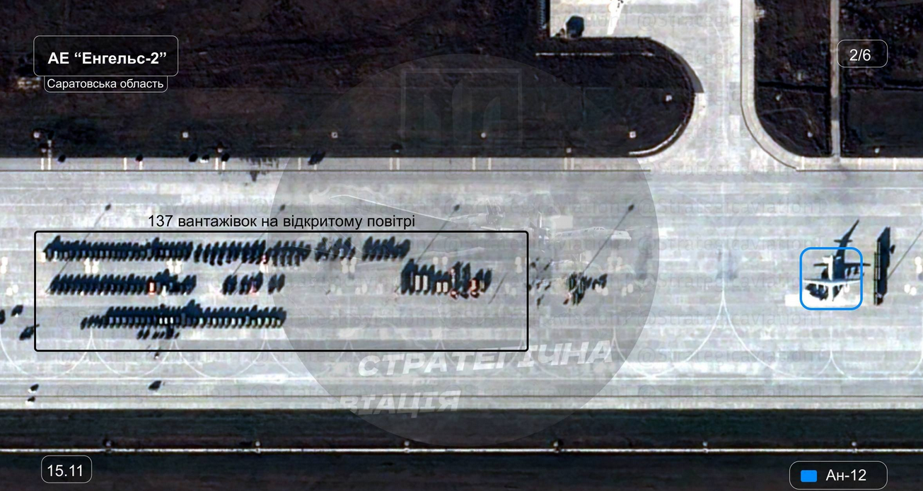 Росіяни розмістили на авіабазі стратегічної авіації «Енгельс-2» надзвичайно велику кількість техніки. Супутникові знімки показали, що на стоянці для літаків зосереджено відразу 137 вантажівок невідомого призначення.