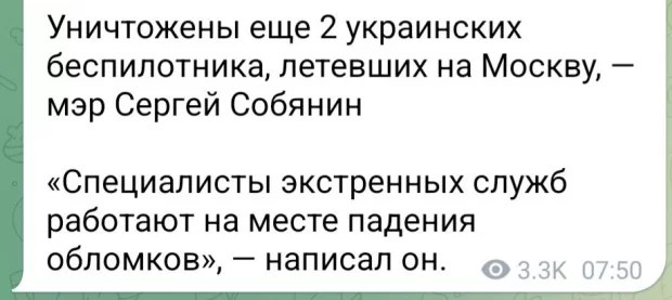 Про останні безпілотники, які атакували москву, мер Сергій Собянін повідомляв вже вранці.