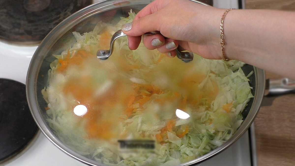 Якщо вся капуста не міститься, тоді додаємо порціями, через якийсь час вона зменшиться у розмірі.