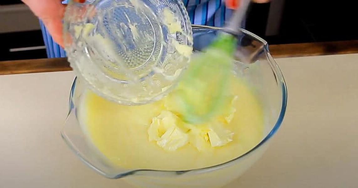 Забираю з вогню крем, трохи охолоджую, додаю м’яку олію, перемішую.