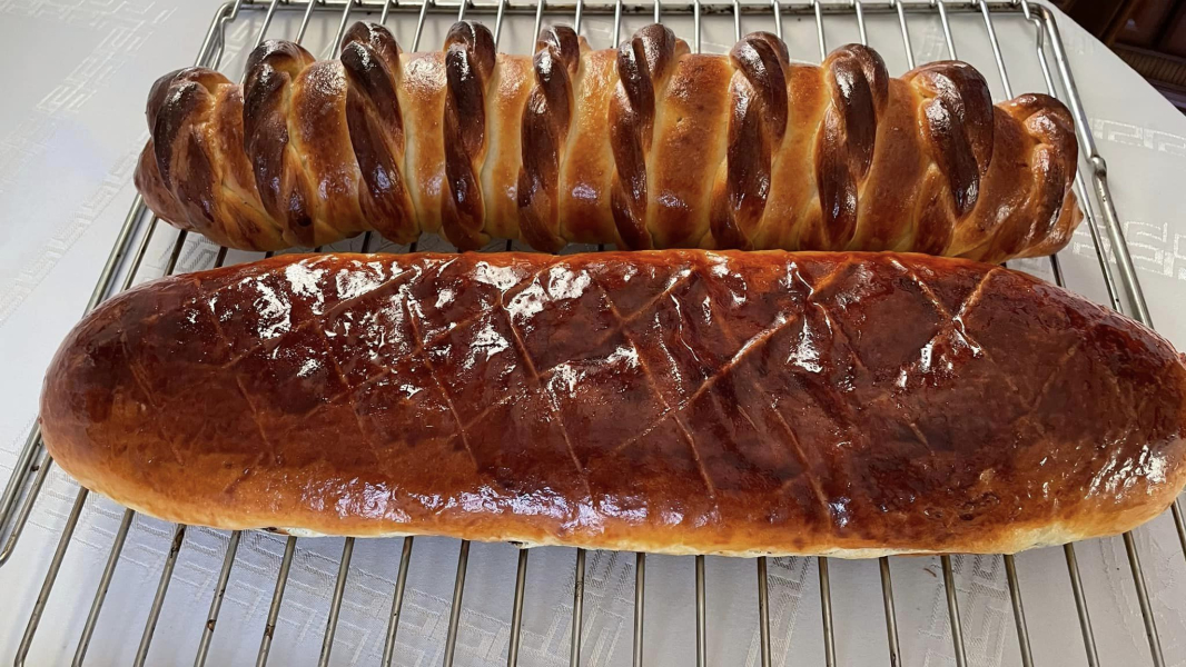 Через 5 хв. до випічки змастити жовток+ вода/ молоко, проколоти шпажкою легенько з боків, щоб волога мала куди виходити і тісто не тріснуло.
