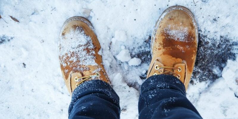 Взуття має бути шкіряним і непромокальним. Часто можна побачити на полицях магазинів зимові кросівки з сітчастою мембраною, яка пропускатиме холод і вологу. Жоден утеплювач усередині не допоможе, якщо взуття не підходить за погодою.