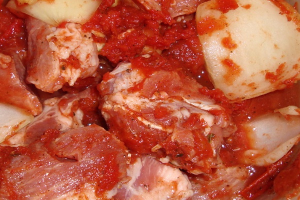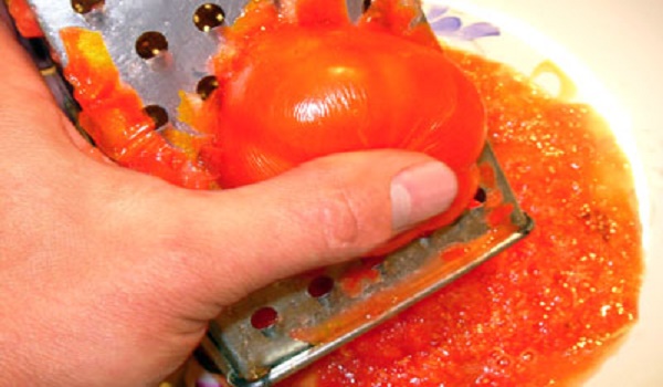 Помідори потрібно попередньо очистити та натерти на тертці. Змішати з м’ясом.