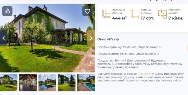 Він також показав відповідне оголошення про продаж, опубліковане на сайті одного з українських агентств із нерухомості. В оголошенні зазначено, що двоповерховий розкішний будинок “має все потрібне для комфортного проживання”.