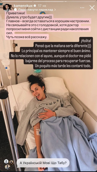 У сториз зірка уточнила, що госпіталізація не зовсім пов’язана з її відмовою від їжі. Проте додала, що через такі експерименти з харчуванням довелося призупинити процес очищення, аби швидше відновити сили за рекомендацією лікаря.