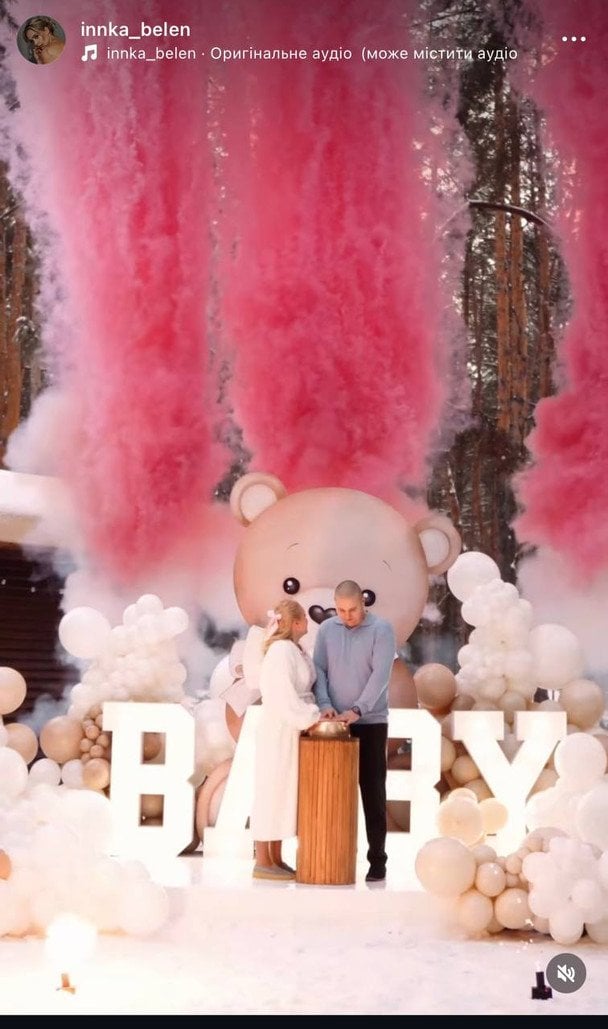В Instagram Інна опублікувала відео важливого моменту, коли вони дізналися про стать первістка. Інна з чоловіком Іваном стояли на тематичній фотозоні, натисли на кнопку і позаду них вибухнув дим рожевого кольору, який означав, що вони чекають на донечку.