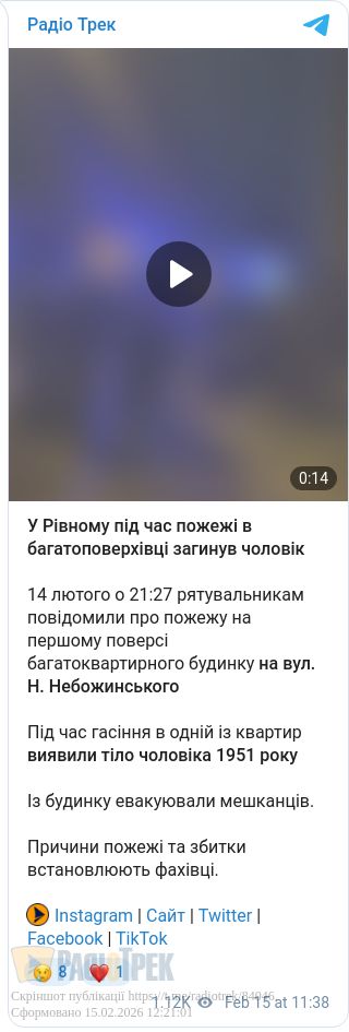 Займання сталося 14 лютого о 21:27 на першому поверсі житлового будинку на вулиці Н. Небожинського. Рятувальники працювали в апаратах захисту органів дихання та зору. Одна ланка евакуювала мешканців, інша — ліквідовувала пожежу.