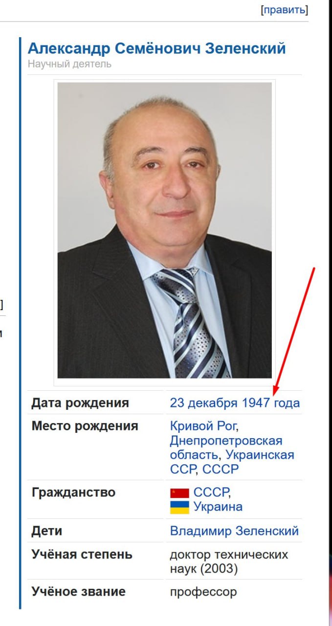 Все б добре, але от батько Зеленського народився через два роки після її закінчення. Олександр Зеленський народився 23 грудня 1947 року у Кривому Розі.