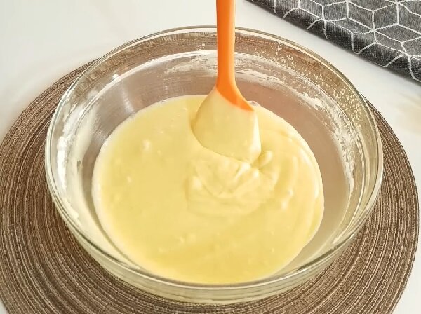 Добре розмішайте всі інгредієнти, щоб не залишилося грудочок. У вас має вийти густе текуче тісто, як на оладки.