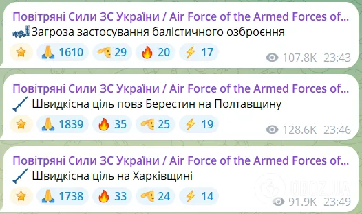 Ймовірно, Берестин опинився під атакою ворожої балістики. О 23:43 Повітряні сили ЗС України попереджали про загрозу, а також писали про цілі, які фіксувались на Харківщині.