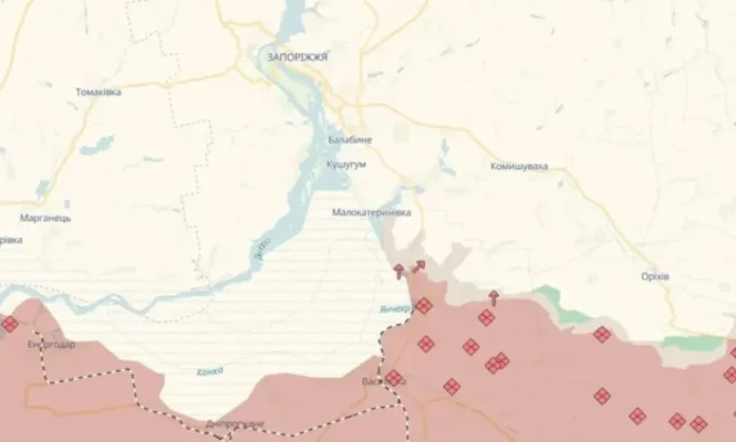 За даними аналітичної карти Deep State, найкоротша відстань від лінії фронту до Запоріжжя наразі становить приблизно 20,78 кілометра. Найближчі позиції російських сил розташовані південніше міста, в районі Малокатеринівки.