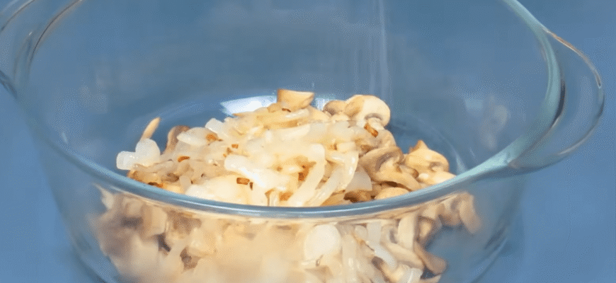 Змішуємо обсмажені гриби з цибулею і залишаємо охолонути.