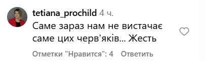 «Десь так починався ковід», «Зубожіння накрило столицю, вже їмо жуків», «Шоколад з Мівіною», «Фу, подобається», «Ну пташки ж їдять, чому б ні! Хороший білковий склад», «Ви що, знущаєтеся з людей?! Ще б фекалії загорнули в обгортку», «Саме зараз нам не вистачає саме цих черв’яків… Жесть», — писали вони активно в соцмережах.