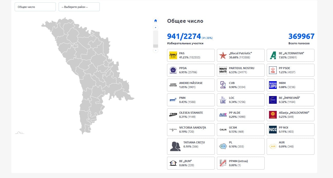 Усередині країни виборчі дільниці закрилися о 21:00 за місцевим часом. Однак процес триває за кордоном, де традиційно бере участь значна частина молдавської діаспори, яка формує до чверті голосів.