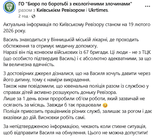 «18 лютого до відділу поліції №3 Вінницького райуправління надійшло повідомлення від спеціального кореспондента періодичного видання про те, що минулої доби співробітники РТЦК та СП, а також працівники поліції, незаконно його затримали та спричинили тілесні ушкодження, після чого відвезли до с. Бохоники Вінницького району для проходження ВЛК», — йдеться в повідомленні.