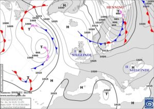 Потужна масштабна антициклонічна смуга високого атмосферного тиску, що витягнулася від Ісландії через Велику Британію через Німеччину-Польщу до України блокуватиме доступ опадів. Карта внизу.