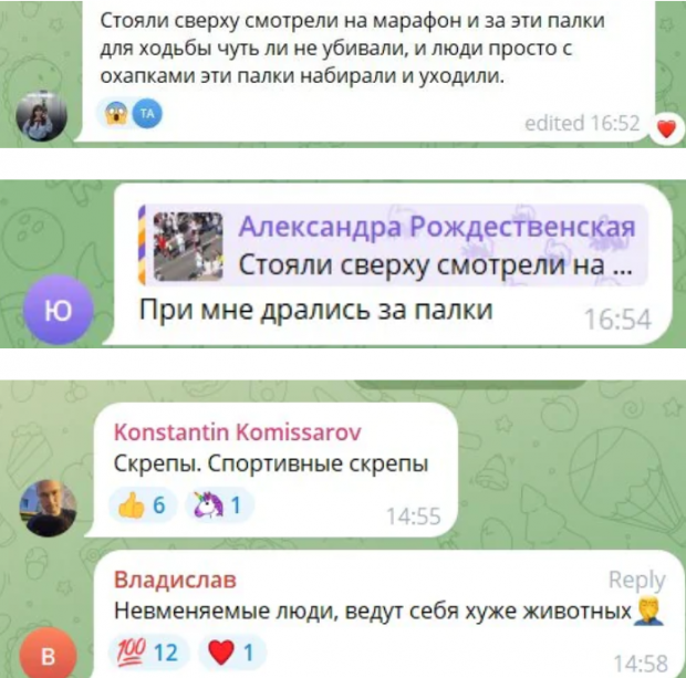 У мережі повідомляють, що стали свідками бійок за безкоштовні палиці. Один із користувачів зазначив, що деякі мало не вбивали один одного за них. За словами очевидців, найшвидші забирали з собою одразу кілька наборів палиць і повзли вгору по схилу.