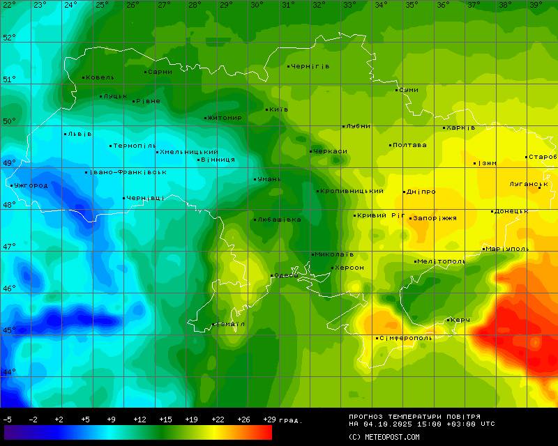 У суботу і воскресіння, 4–5 жовтня найхолодніша погода очікується у західних областях України, де температура становитиме +9…12°C.