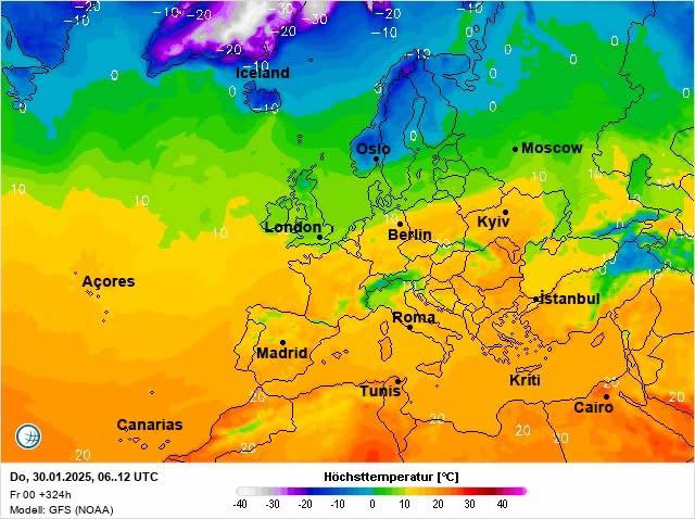 Про це повідомила із посиланням на дані довгострокового прогнозу погоди у Європі синоптик Наталія Діденко. За її словами, наприкінці січня буде прохолодніше лише на сході України +5…9.