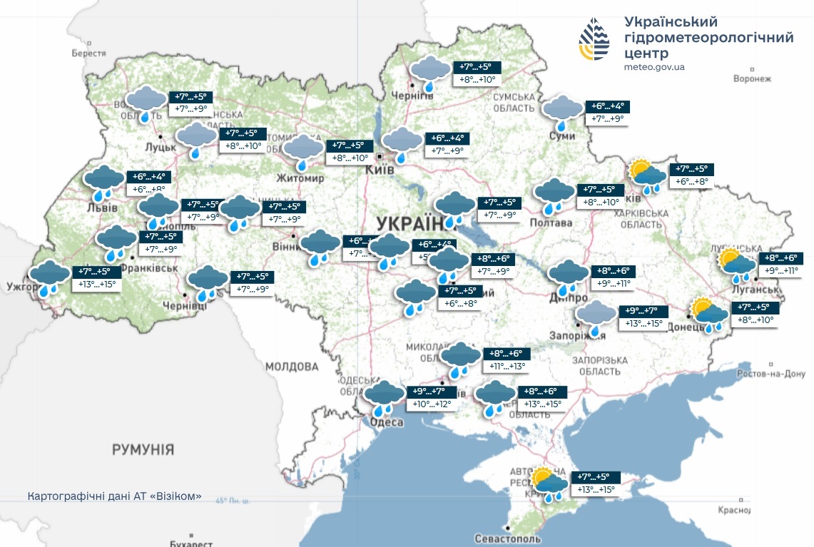 - Схід: +7…11 °C.