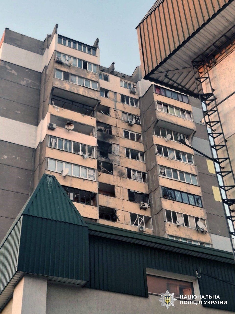 У мікрорайоні Північний російський ударний дрон вразив багатоквартирний будинок, зруйнувавши квартири та пошкодивши сусідню будівлю, медична допомога знадобилася чотирьом постраждалим, включаючи поліцейського.