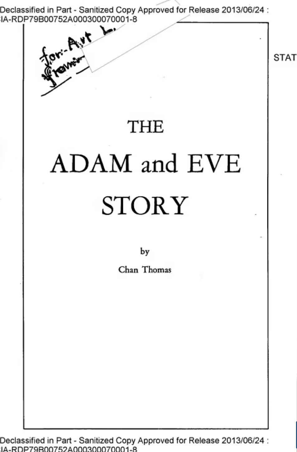 ЦРУ частично розсекретило книгу Чана Томаса, дослідника НЛО та колишнього співробітника ВВС США. У своїй праці “Історія Адама і Єви”, написаної у 1966 році, Томас заявляє, що кожних 6500 років на Землі відбуваються масштабні природні катаклізми, схожі на библейний потоп.