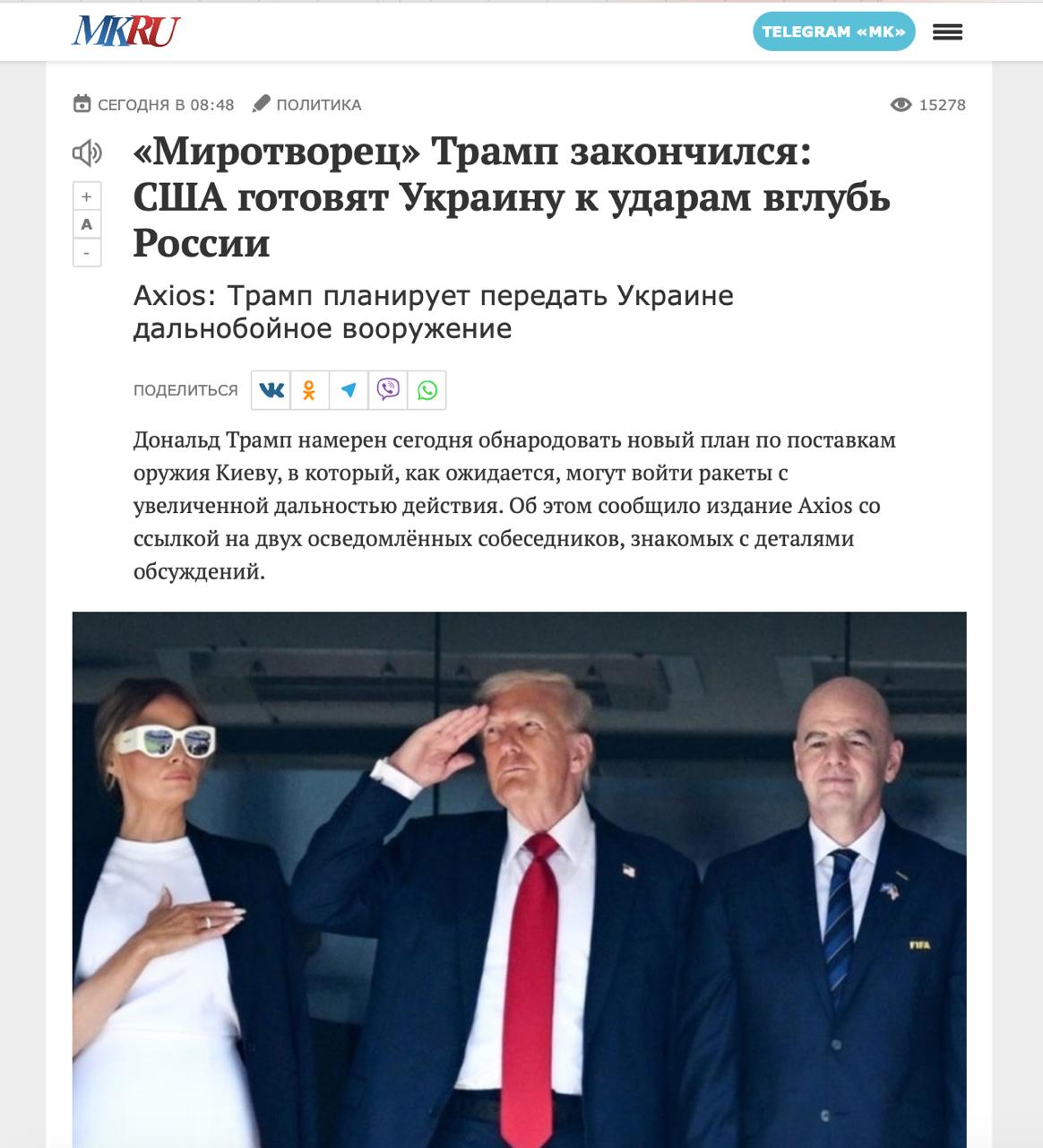 Москва вражена та шокована поворотом американської адміністрації щодо Росії та України. Рішення Трампа різко наростити потік зброї Києву викликав справжній переполох у Москві. Більше того, чутки про те, що Київ отримає ракети для завдання ударів по російській столиці, викликали справжню паніку у росіян, наслідком якої стали ядерні погрози.
