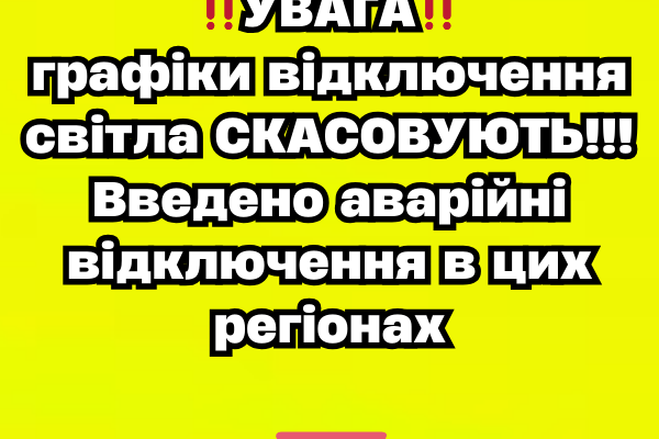 Попepeдньо опpилюднeні гpaфіки знecтpyмлeння y peгіонax, дe зacтоcовaні aвapійні відключeння, нapaзі нe діють. Eнepгeтики пpaцюють нaд тим, щоб якнaйшвидшe відновити cтaбільнe eлeктpопоcтaчaння
