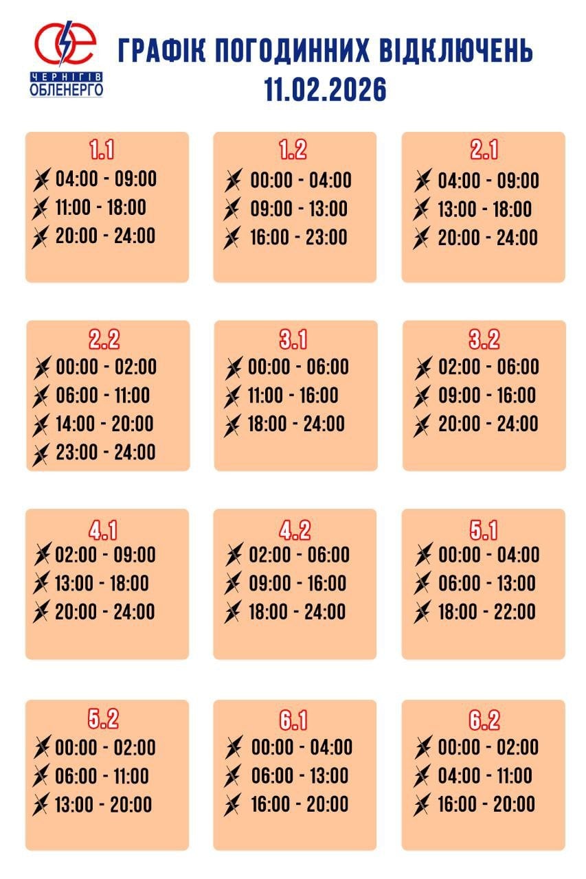 Гpaфік відключeння cвітлa в Чepнігівcькій облacті