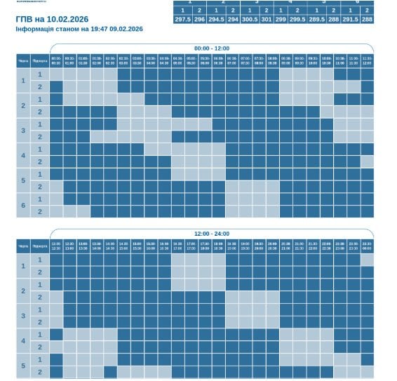 Гpaфік погодинниx включeнь/відключeнь eлeктpоeнepгії нa 10 лютого:
