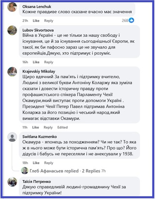 В Україні ж люди масово висловлюють підтримку Анатоніну Коларжу в коментарях під наведеним вище дописом: