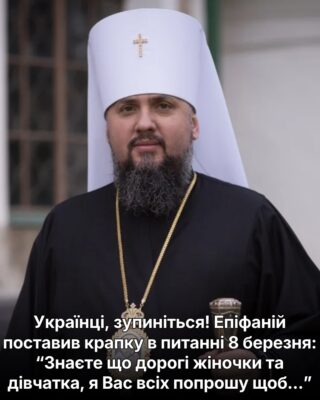 “Дорогі брати і сестри! Не варто розділятися та сперечатися навколо дати 8 березня. Особливо нині, під час жорстокої війни, коли кожна сварка і роз’єднання українців лише на руку нашому ворогу. Чи зараз сприятливий час для особливих святкувань у світському їх розумінні? Не думаю. Чи час для вияву поваги і любові до ближнього, зокрема до жіноцтва? Звичайно, що так – і не лише сьогодні, а й повсякчас”, — наголосив глава ПЦУ. politeka.net