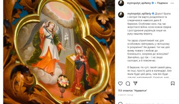 Митрополит Епіфаній додав, що 8 березня, по суті, такий самий день, як інші, просто дата в календарі.