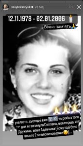 Василь Вірастюк вшанував пам’ять трагічно загиблої першої дружини і показав її архівне фото.